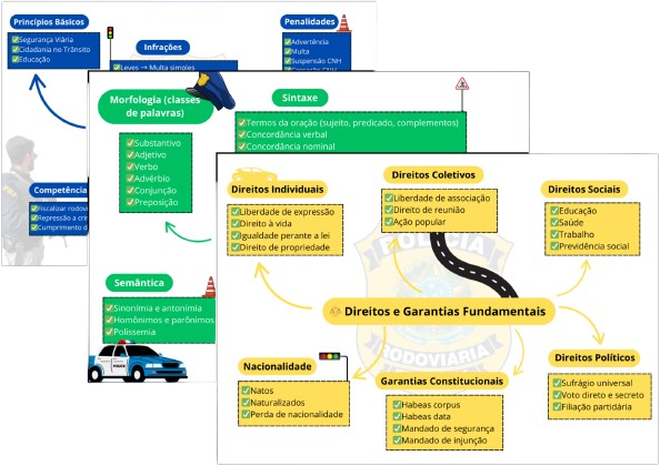 O jeito mais rápido, visual e prático de revisar as disciplinas do concurso da POLÍCIA RODOVIÁRIA FEDERAL.